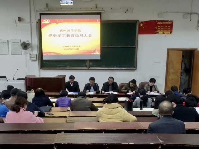 3月23日下午,师范学院召开党史学习教育动员大会,深入学习贯彻中央党史学习教育动员大会精神和全省党史学习教育动员大会精神,落实全省教育系统和学校党委党史学习教育动员会有关要求,安排部署学院党史学习教育工作。学院全体师生党员参加会议,会议由院党委书记章国平主持并作动员讲话。