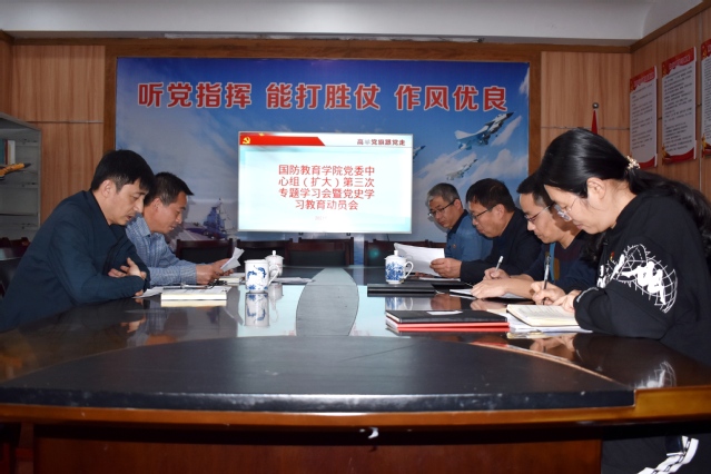 2021年3月9日下午,国防教育学院党委中心组(扩大)第三次专题学习会暨党史学习教育动员部署会在抚州学府校区108党员活动室召开,会议上传达学习党的十九届五中全会精神;《中共中央关于加强党的政治建设的意见》;《关于巩固深化“不忘初心、牢记使命”主题教育成果的意见》;省委十四届十二次全会精神等,并对学院党委中心组党史学习教育作动员部署。国防教育学院领导班子成员、党支部书记、全体教师党员参加会议,会议由党委书记李儒俊主持。
