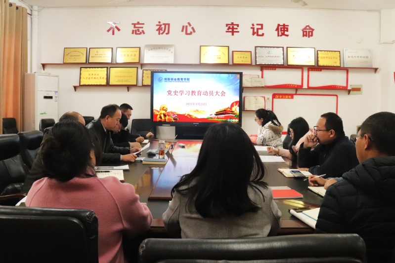 3月23日下午,创新创业教育学院在学院308会议室召开党史学习教育动员大会,部署学院党史学习教育工作。学院全体教职工参加会议,院党总支书记王合义主持会议并作动员讲话。