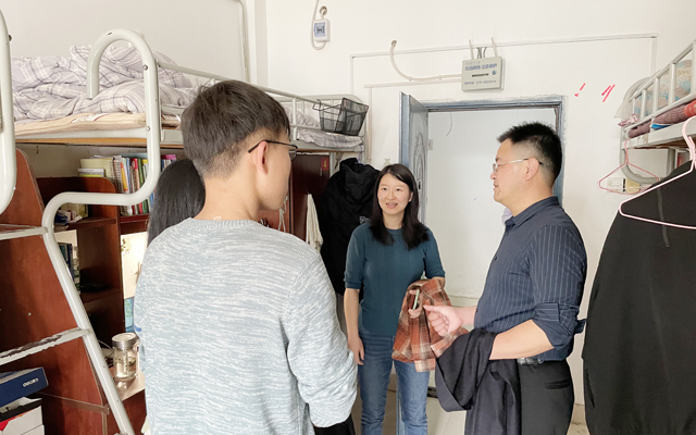 走访过程中,检查组一行还与毕业生进行了面对面的交流,仔细询问了同学们的学习生活情况,认真了解毕业生目前的就业协议签订、考研复试等情况,叮嘱同学们务必注意安全,保持宿舍卫生,做好疫情防护。