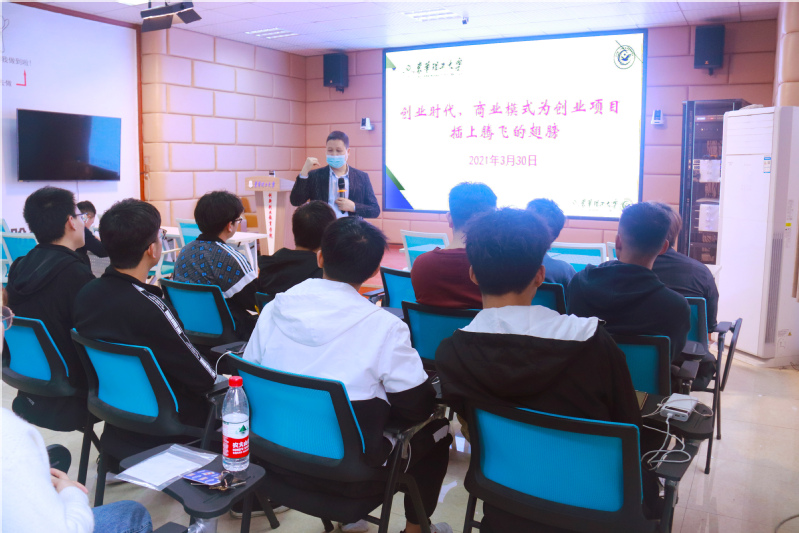 讲座中,吴华龙首先对当前大学生创业政策、创业背景、创业方向选择进行了分析,引导同学们发挥专业特色优势,积极投身创新创业实践活动。随后赵平围绕“创业怎么创?”、“创业思维如何养成?”、“如何打造成功的商业模式?”等问题展开详细讲解。通过系列典型案例和自身创业的经历分享,帮助同学们理解了商业模式和创业思维在创业项目中的重要性。鼓励同学们用好互联网、新媒体工具,合理规划并参与创新创业活动,更好地实现精神追求和自身价值。