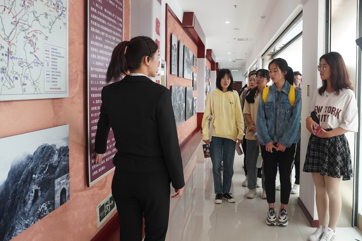 红色文化长廊一共有三层,每一层都展示着不同的主题。讲解员首先引领同学们来到第四层,介绍了当年在抚州牺牲的先烈遗照、生平事迹和感人的革命故事。接着引领同学们来到第五楼层,在这里了解到中央主力红军在抚州苏区发生的彪炳党史军史的20余场战斗。在谈及战争爆发的时间、原因和结果时,仿佛战争之景历历在目,感受到了那个时代的紧张氛围。讲解员带领同学们来到第六层一起参观了当年留存下来的红军标语等一些实物,了解到了人民群众为保存红军标语而做出的努力,反映出中央苏区艰辛的革命历程。参观中,同学们怀着无比崇高的心情,感受伟人坚定的共产主义信念和探索革命红色之路不屈不挠的斗争精神。陪同指导我们参观的校督导组饶瑞昌和曹俊昌老师也不断的鼓励我们要珍惜时光,不断奋发向上,为中华民族的伟大复兴贡献力量。