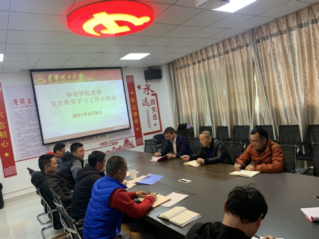 4月8日中午,体育学院党史教育学习工作小组会在体育馆一楼党员活动室召开。体育学院党委委员、党支部书记、科级干部参加会议,会议由学院党委书记张明主持。