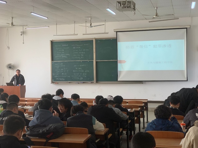本次活动由学院学团办负责人胡敏主持,他从国家安全教育、反邪宣传教育、法制宣传教育、禁毒宣传教育、网络信息安全等方面进行宣讲。向同学们宣传总体国家安全观,普及禁毒法规、知识和毒品危害,传播禁毒观念。通过发生的案例,分析了网络电信诈骗、网络传销和校园贷的典型骗术,普及了网络信息安全防范知识。最后,他要求学生干部积极发挥带头作用,带领身边同学提高安全意识,防范网络诈骗。