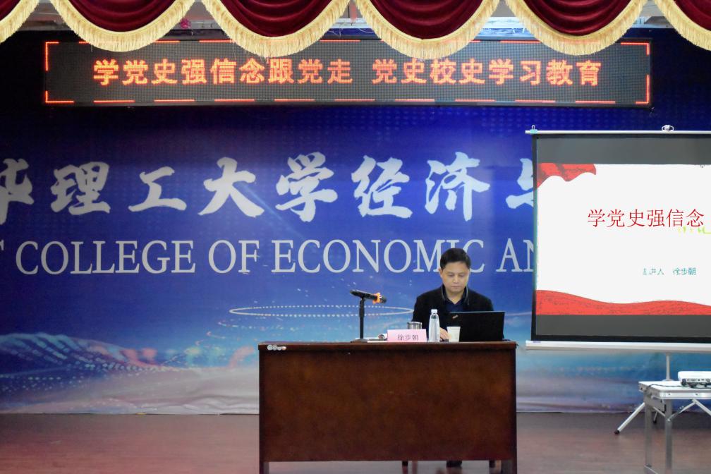 读史可以明智,知古方能鉴今。东华理工大学经济与管理学院团委在院党委的领导下深入开展党史学习教育,汲取党史精神营养。4月7日,院团委于经管楼一楼报告厅召开了“学党史强信念跟党走 党史校史学习教育”主题大会,大会邀请到学院党委书记徐步朝讲授课程。徐步朝结合自身经历,向全体团学工作者讲述了党的历史以及以核工业发展史为主脉络的校史,为大家上了一堂生动有意义的党史校史教育课。