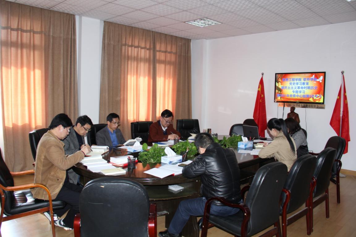 4月9日下午,信息工程学院、软件学院党委在软件楼313会议室召开党史学习教育第一专题新民主主义革命时期历史专题学习暨党委理论学习中心组第5次学习会。学院党委书记许亚男主持会议,院党委中心组成员参加学习。