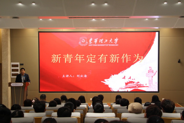 刘云海以“新青年定有新作为”为主题,向同学们讲述了东华理工青年们在核军工精神浸润影响和感召激励下,在疫情防控、抗洪抢险中争做力所能及的工作,展现出年轻学子们守初心、担使命、做实事的优良品质。通过讲述宋金如、周义朋、李荣同、罗峰等老师的先进事迹启发同学们向身边那些平凡而伟大的青年榜样学习。最后,通过向同学们介绍奋斗在各行各业的杰出校友代表,他希望同学们都能将自己理想和幸福与国家前途紧密联系在一起,努力成长为厚实有谱、踏实靠谱、朴实不摆谱的有为青年。