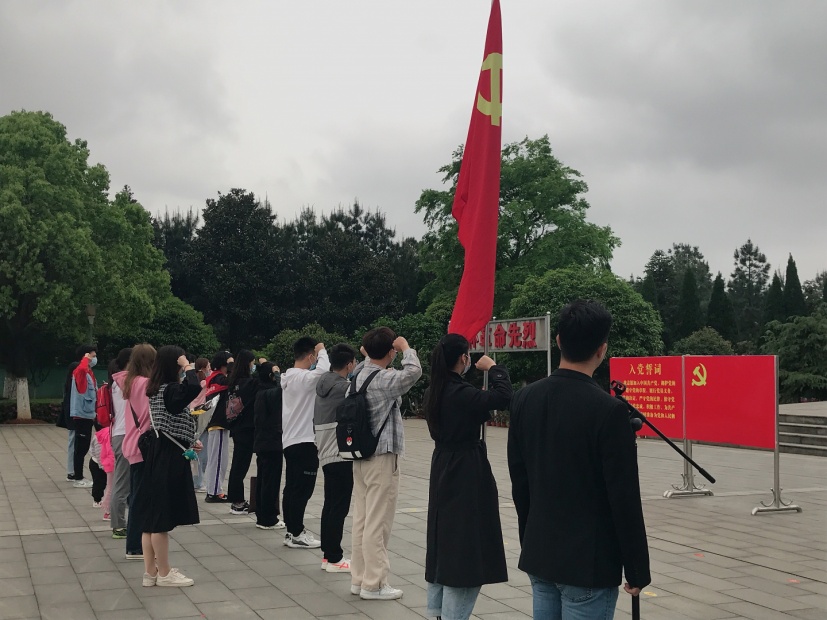 在鲜红的党旗下,全体党员重温了入党誓词,坚定了入党信念,奋斗初心。大家纷纷表示,我们不但要向革命先烈表示崇高敬意,永远怀念他们,牢记他们,更要坚定理想信念,发扬革命精神,传承好红色基因,以实际行动弘扬爱国之情,践行报国之志,为实现中华民族伟大复兴的中国梦贡献青春力量。