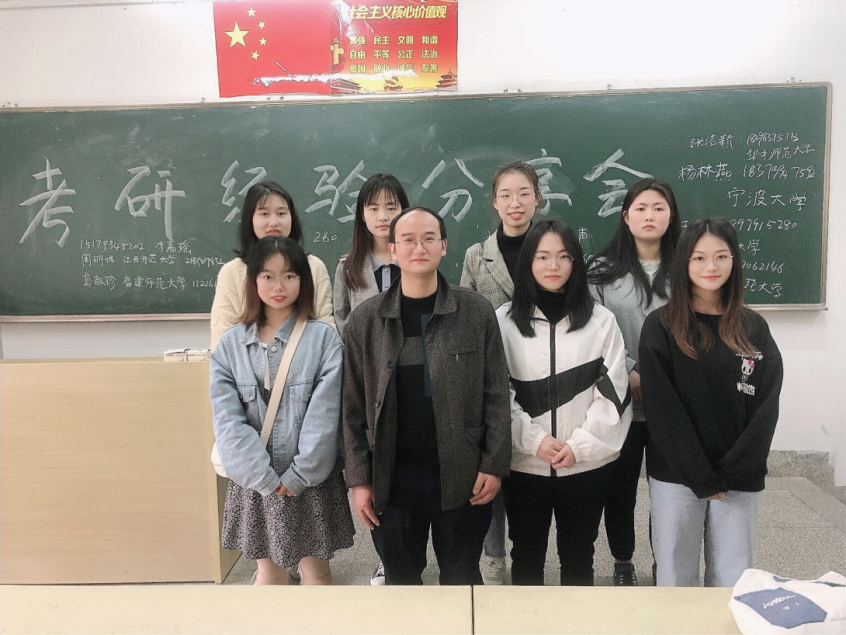 张洁新、杨林燕同学就其考研期间的具体过程作了分享,并提醒了复习的注意事项,在心态上,不要患得患失,要坚持、努力,一直走下去,在备考过程中,不要孤军奋战,要和同学一起分享和学习。