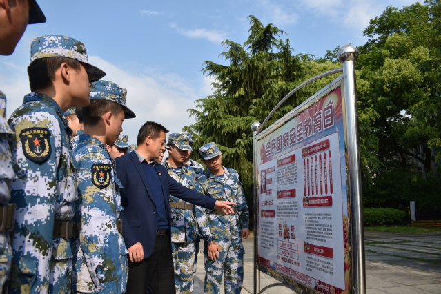 3月24日,学院组织全体海军定向培养士官到学府校区蘑菇云广场2021年平安建设集中宣传活动。集中宣传活动由党委书记李儒俊主持,院长赵克锋、党政办公室副主任曹燕、组织员傅江辉、研究生辅导员罗晓通参加。