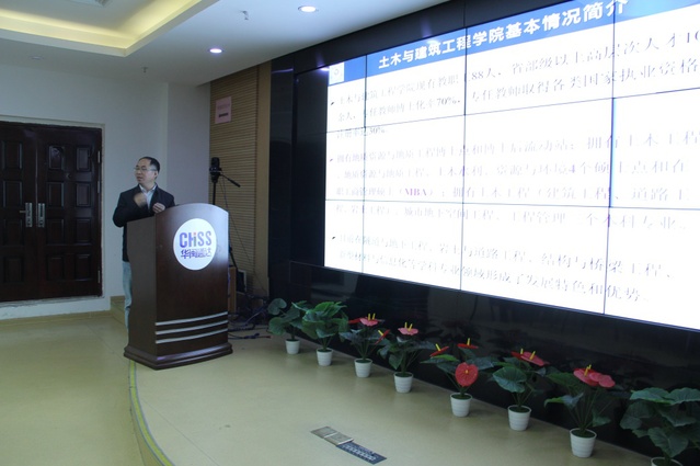首先,福建华闽通达信息技术有限公司软件开发部门负责人尹刚林介绍了公司在软件开发方面的优势。随后,土木与建筑工程学院院长吴波教授对土木与建筑工程学院的基本情况、安全风险智慧管控平台研究基础以及建设规划进行了详细介绍。