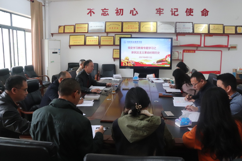 4月13日上午,创新创业教育学院在学院308会议室召开党史学习教育专题会,专题学习“新民主主义革命时期”党史,学院全体教职工参加专题学习会,会议由学院党总支书记王合义主持。
