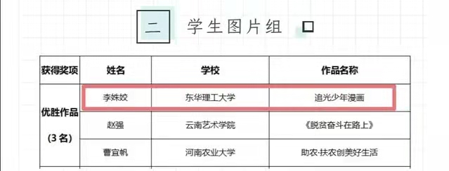 近日,由团中央青年发展部、教育部全国学生资助管理中心、中国银行、中国青年报社联合举办的全国第七届“助学·筑梦·铸人”主题活动落下帷幕。我院学生杨镇宇、韩春明、李姝姣、马茜的作品《追光少年漫画》、短视频作品《追光少年》,在55915份参赛作品中脱颖而出,分别荣获优胜作品(全国仅3项入选)、优秀作品各1项。