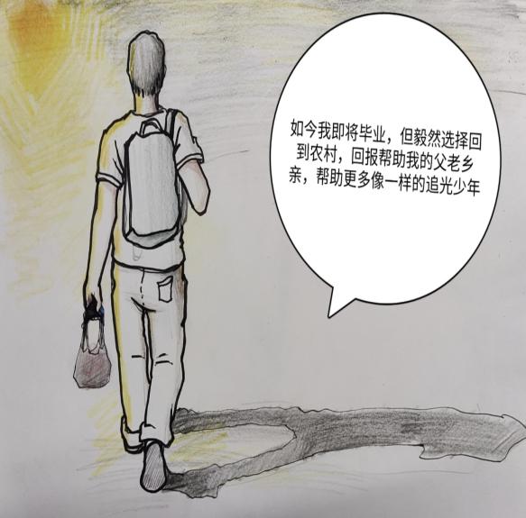 漫画及视频作品以我院励志少年杨镇宇为故事原型,讲述他历经十多年寒窗苦读考上大学时,父亲突发疾病,一时无力支付学费成为他走向大学之路的一块巨石,而就在此时,村干部带来的国家资助政策让他走出乡村,圆了大学梦。大学学习期间,他表现突出,获得各类荣誉30余项。即将毕业之际,许多公司纷纷向他抛来橄榄枝,但他毅然选择回到农村,以回报曾经帮助他的父老乡亲,来帮助更多像他一样的少年。