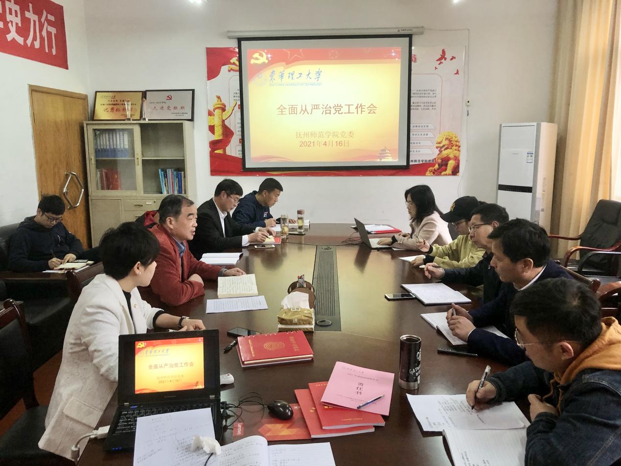 4月16日下午,师范学院在抚州校区学府校园行政楼339会议室召开2021年全面从严治党第2次专题会议。学院领导、党政办、教务办等负责同志和各基层支部书记参加会议。会议由学院党委书记章国平主持。