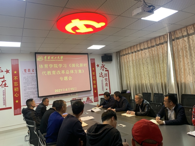 为贯彻落实中共中央、国务院《深化新时代教育评价改革总体方案》,推动改革任务落实落地,按照中共江西省委教育工作领导小组有关全面清理规范的工作要求,4月15日中午,体育学院开展学习深化新时代教育评价改革总体方案专题会,会议由院长李风雷主持,科级以上干部参加会议。
