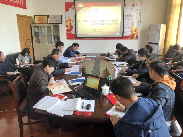 4月20日,师范学院党委在抚州校区学府校园行政楼339会议室召开2021年理论学习中心组第5次学习会暨党史学习教育“新民主主义革命时期历史”专题第二次学习研讨,学院中心组成员参加会议。会议由院党委书记章国平主持。