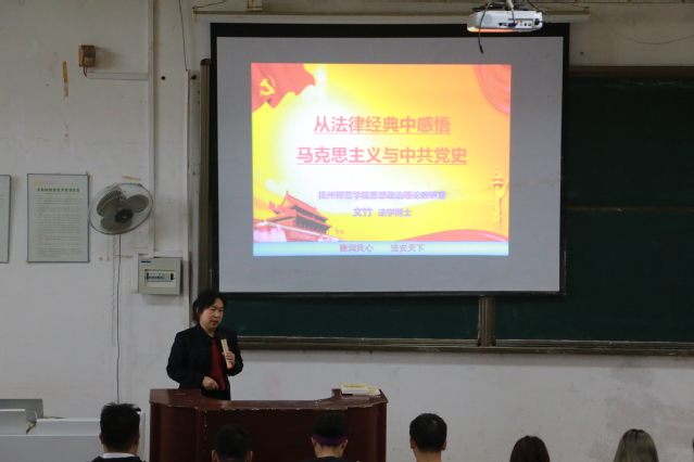 文竹老师以“从法律经典中感悟马克思主义与中共党史”为题给大家带来了一场精彩的思政课+党史学习教育课。她从教学手段设计、教学内容编排、教学方法使用等方面进行了精心筹划,并在授课过程中结合法律案例讲解党史故事,用党史经典来解析法律案例,公开课感人的内容,生动的讲释,让大家受到了一次深刻的党史教育,进一步增强了师生们的遵纪守法的意识,树立了正确的法制观念,取得了较好的教学效果。