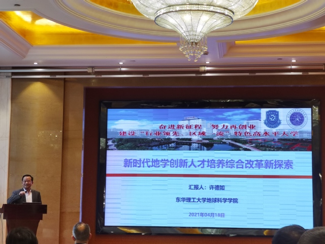 本次会议主要探讨地球科学一流学科、一流专业、一流课程建设以及各高校“十三五”地学人才培养成果与“十四五”发展规划,对地质学科如何更好地服务国家战略具有十分重要的意义。会议期间,来自全国16所高校的地学院院长做了大会报告,就地质学科现状与挑战、加强多边国际合作、地球科学一流学科建设现状与发展思路、新时代地学人才改革等进行了交流共享。许德如教授做了题为“新时代地学创新人才培养综合改革新探索”的大会报告,引起了参会者的热烈关注和共鸣。