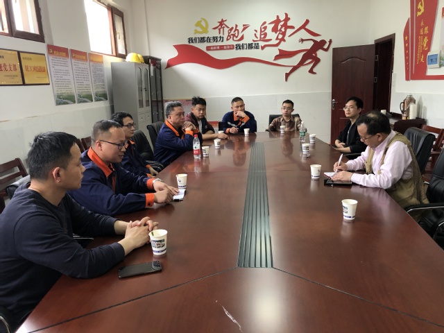 在与江西省地质局赣东北大队洽谈合作与交流研讨后,许德如院长一行前往中国黄金集团江西金山矿业有限公司进行调研。在金山矿业公司地质测量部林永峰部长的陪同下,许德如教授一行首先对金山金矿露天采场开展了野外考察和现场交流。随后,与金山矿业公司的技术骨干进行了座谈,双方均表示今后将在金山金矿的深部找矿、采矿选冶、矿山环境治理等方面开展深入合作。