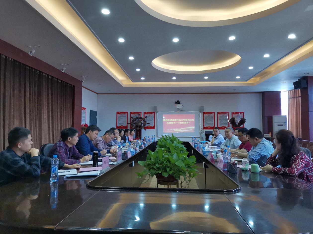4月23日上午,西南科技大学研究生院吴斌院长、党委研究生工作部朱目成部长、研究生院宋丹路副院长等一行6人到我校研究生院调研交流。调研交流会在软件楼316会议室举行,研究生院院长李满根、党委书记刘峙嵘、副书记王新年、副院长张延飞以及相关科室负责人参加了本次交流会。会议由李满根主持。
