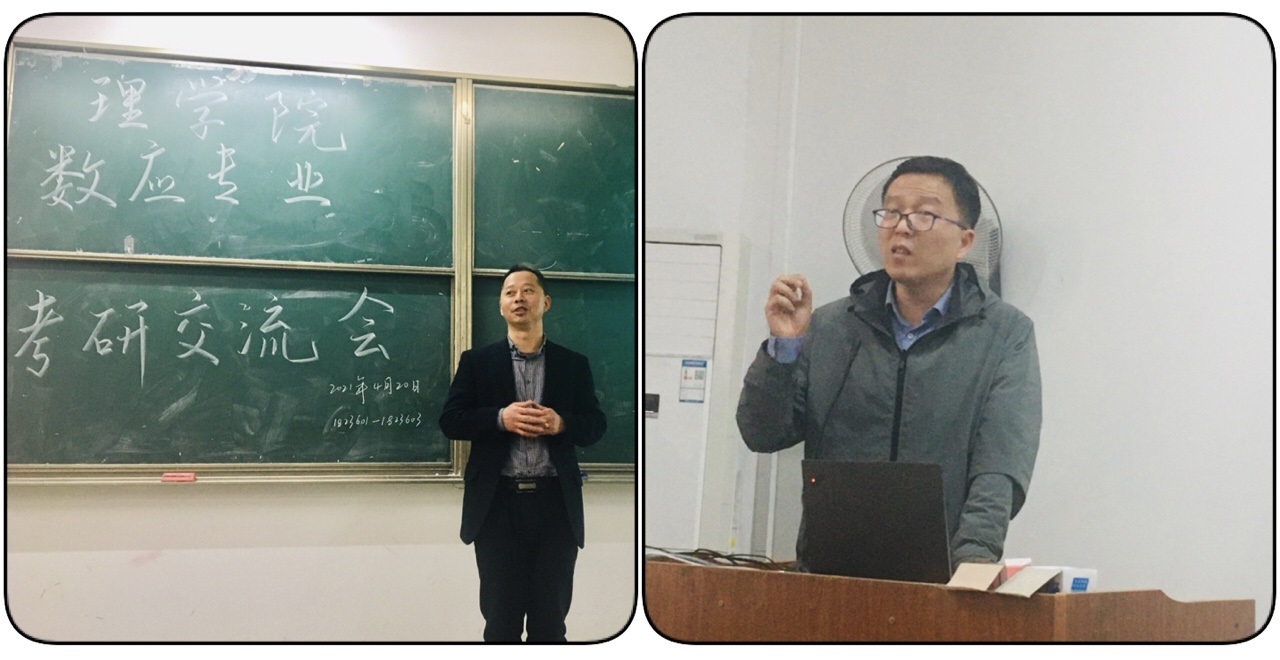 经验分享结束后,张建华副院长鼓励同学们报考本校研究生,向2018级数应专业的同学们详细介绍了理学院数学学科建设的情况以及研究生录取相关政策。最后王泽文院长对本次交流会作总结,鼓励同学们积极准备考研,选择好学校,全力备考。