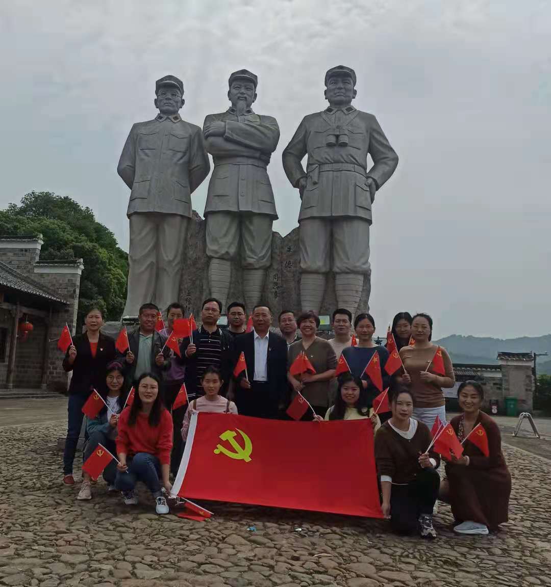 靡不有初,鲜克有终。今年是建党100周年,经济与管理系党总支以此为契机,组织支部全体教师党员到金溪县后龚村红色教育基地开展党史学习教育实践活动,抵达以后,全体党员在游客服务中心,大家肃然站立,瞻仰周恩来、朱德、王稼祥三位革命先辈雕像,并进行入党宣誓的活动。