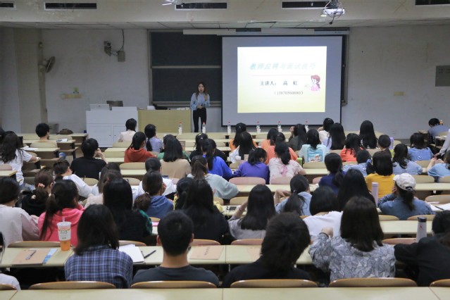 为深入贯彻落实党史学习教育,切实为群众办实事解难题,帮助学生掌握教师资格证面试技巧,更加顺利地通过教师资格考试,4月23日-24日,师范学院在二教阶十、阶十三教室举办了教师资格证面试培训讲座。讲座邀请到聚英教育集团江西敏试教育高虹老师担任主讲人。