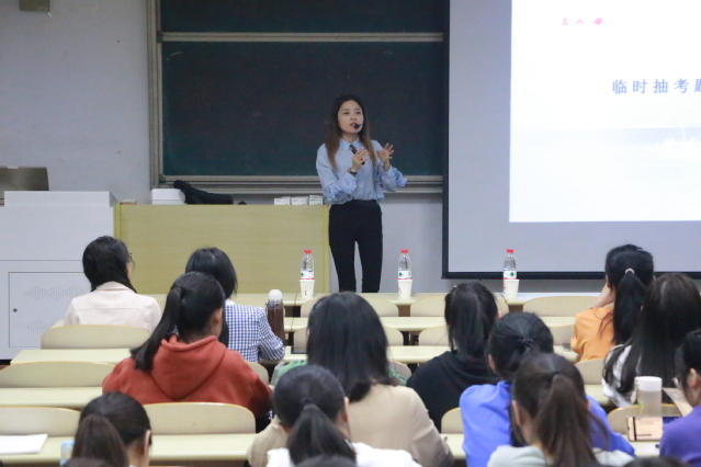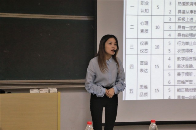 此次培训中还加入了同学们现场试讲展示环节,19级汉语言文学专业吕裕青和18级汉语言文学专业付盼先后上台,试讲《戴帽子的人》与《沁园春•长沙》。高虹根据两位同学的礼仪规范、言语规范、讲授内容,指出试讲时同学们的不足之处,也肯定了两位同学的精彩表现。高虹老师风趣幽默的授课风格,将重点讲解的深入浅出,深受同学们的喜爱,也让大家收获颇丰。