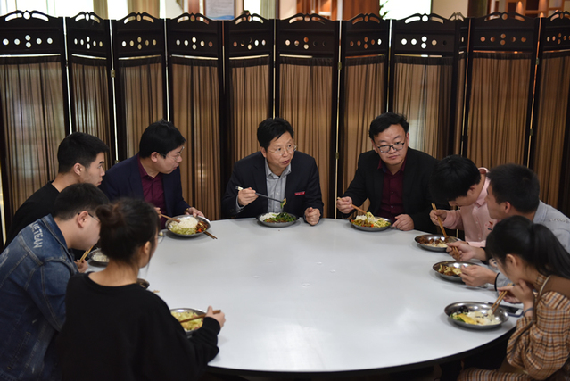 为了扎实推进党史学习教育向纵深发展,广泛倾听青年学生的心声和期望,有效开展“我为群众办实事”实践活动,同时促进校院领导“双体验日”活动落地落细,4月26日中午,信息工程学院、软件学院在广兰校区北区食堂三楼组织开展了师生共餐共话党史活动,校党委常委、副校长聂逢君在所联系学院党委负责同志的陪同下与部分学生共进午餐、共话党史。