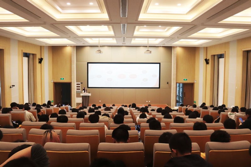 陈景宏介绍了互联网背景下青年就业创业趋势,阐述了高校创新创业的价值与意义;结合自己目前从事的行业,解读了“B2B电子商务”发展现状和孕育的广阔市场及就业创业机会,希望青年学生要开阔视野,提升综合能力,学会把握经济发展大势,抓住风口就业创业优势。陈景宏还结合高校创新创业项目特点,为师生介绍了高校创新创业项目的选育、创业项目团队组建、市场调研与项目定位等内容。唐友佳则从项目亮点、市场分析、服务链条、财务模式、运营模式等内容,为大家介绍了项目路演的技巧和方法。