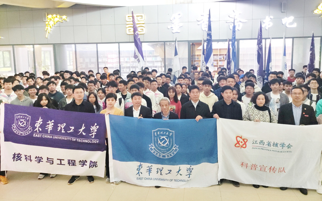 汤彬在讲话时指出,学校“为核成立,因核成名,以核成势”,“核”是学校的特色和名片。学校一直秉承“四个一切”的核工业精神,延续着“以身许国、兴核强国”的核军工文化传承,每年通过专题讲座、学术报告、专业竞赛、社会实践、媒体宣传等多种沟通方式开展核安全知识宣传教育,扎实推进核军工文化建设。进入新时代,我们东华理工人肩负着助力国家核能建设,实现“碳达峰、碳中和”战略目标的新使命,希望同学们秉承“敦本务实、崇义奉公”的校训,涵养家国情怀,奋进新时代,展现新作为,为我国核能建设和核事业发展、为富裕美丽幸福现代化江西建设作出积极贡献!