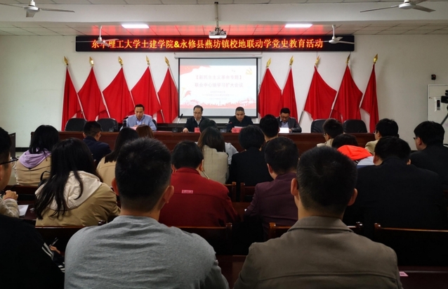为深入推进学院党史学习教育,助力乡村振兴实事,土木与建筑工程学院学院党委联合分工会于4月27日14:00赴永修县燕坊镇开展“校地联合学党史,乡村振兴谱新篇”党史学习教育活动。学院院长吴波、学院党委副书记李明东、燕坊镇党委书记凌铭、燕坊镇镇长虞猛,学院师生代表,燕坊镇全体村支书,共计50余人参加了本次活动。本次活动由燕坊镇镇长虞猛主持。