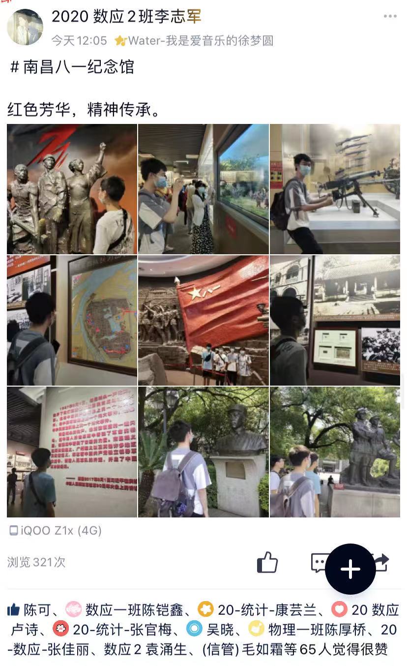 随着党史学习教育深入的扎实推进,“打卡红色地标”成了很多师生五一假期出游的必选方案。师生们纷纷赴江西红色景点、纪念馆、博物馆等地实地参观游览,重温红色记忆,并在微信朋友圈、QQ空间、B站等喜闻乐见的新媒体上打卡分享收获和感悟,让党史入脑入心。