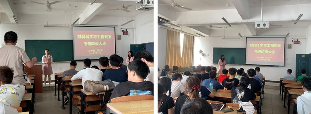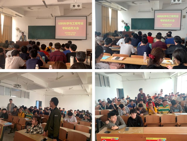 为真正做到学史力行,为学生办实事解难题,解决高年级学生对专业学术水平和学历层次提升的迷茫,为国家和社会培养更多优秀的高层次人才, 4月29日下午,化生材学院材料系教工党支部对2018级材料科学与工程专业学生全覆盖开展考研动员交流会。交流会在三教510进行,邀请了今年拟录取华南理工大学、武汉理工大学、北京化工大学、华东理工大学、暨南大学等6名同学分享考研经验,会议由党支部书记兼2018级班主任何妍主持,支部宣传委员兼2018级班主任张梦萌老师、部分党员教师及2018级有考研意向的同学参加了会议。