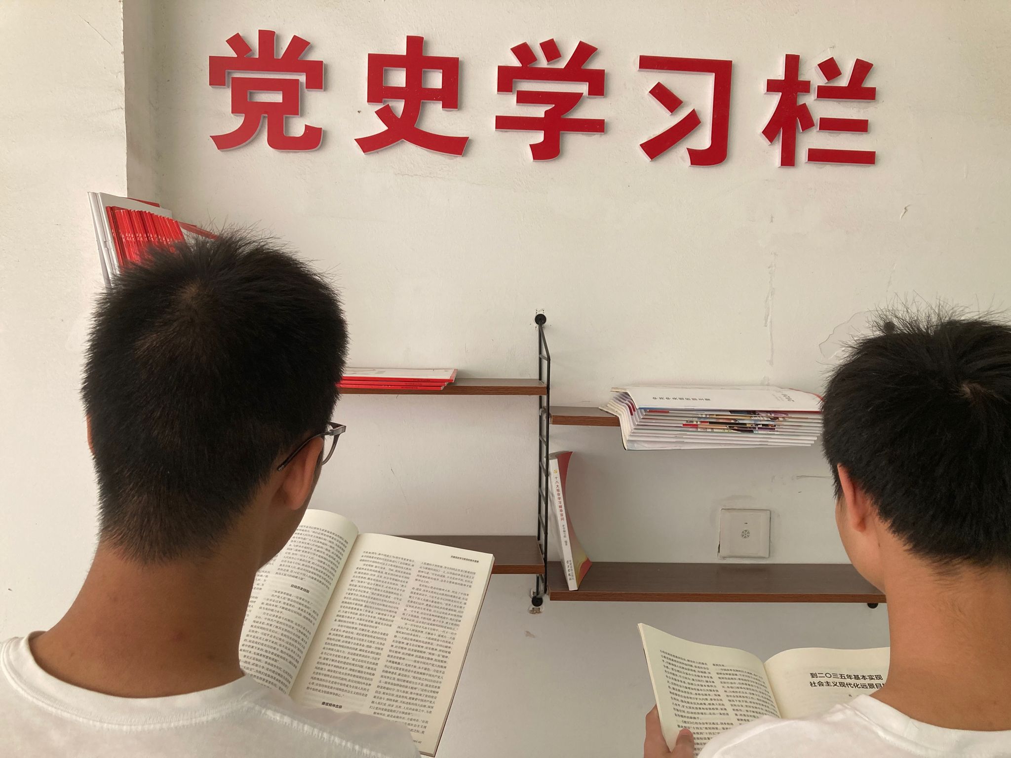 经管楼210室旁新增党史学习园地,为党史学习提供必要的场所。党史学习园地设有桌椅、报刊架、简易书架等基础设施,墙上贴着“党史学习园地”六个大字,同时还安装了窗帘,为学习者遮挡阳光。屋中布局简约、藏书丰厚,包括有《中国共产党简史》、《红岩》、《初心与抉择——转折关头的中国共产党人》、《中国共产党历史》、《百炼成钢——中国共产党应对重大困难与风险的历史经验》等党史读物和学习资料,讲述我党自成立以来勤俭节约的良好作风与为人民服务的宗旨,吸引了众多师生主动前来党史学习屋学习并在墙上贴上自己的学习心得,与其他学习者一同分享,深受师生欢迎。