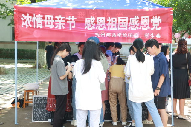 为弘扬中华传统美德,激发学生爱党爱国情怀,师范学院于5月9日-5月10日在学府校区银杏林开展“浓情母亲节,感恩祖国感恩党”活动。