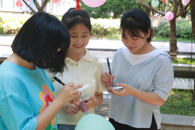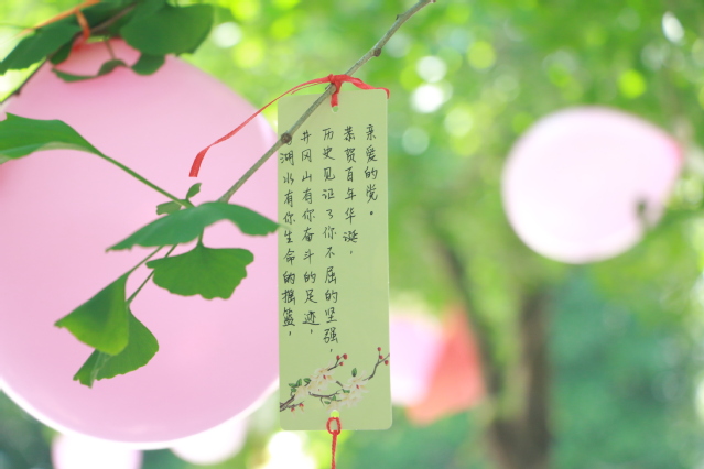 “唱支山歌给党听,我把党来比母亲……”,9日上午,气球、彩带、写有表达炙热情感的感恩祖国感恩党的书签将银杏林装扮一新,同学们纷纷将自己对“母亲”的爱一字一句写下,贴在展板上画的图案上,组成“母亲山”,寓意母爱似高山。活动现场还设有“党史知识趣味竞答”、“唱支红歌颂党恩”等内容。同学们参与积极性高涨,《唱支山歌给党听》、《映山红》、《没有共产党就没有新中国》等红歌在校园里弥漫,经久不息。