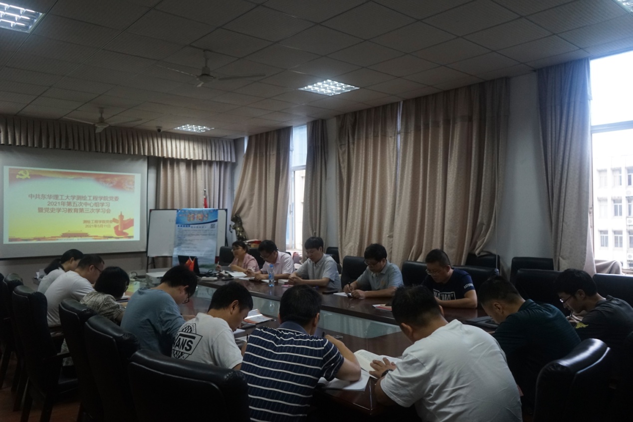 2021年5月11日上午,测绘工程学院党委在测绘楼308会议室召开了2021年第五次中心组(扩大)学习会暨党史学习教育社会主义革命和建设阶段学习会,学院党委中心组成员、科级干部、党支部书记参加了会议。会议由院党委书记吕开云主持。