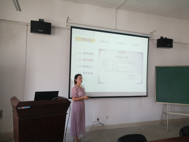 土木工程系程丽红、工程管理系邵炜星两位老师分别从课程概述、课程目标、改革研究、初步成果等方面,结合图片、故事、具体案例等多种形式进行了说课展示,将专业课程中的课程思政进行了详细说明,并就实施方案中所谈及的言行示范、教学内容、教学安排、教学要求等方面如何融入课程思政进行了具体讲解。