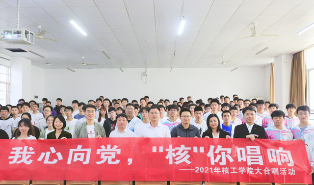为庆祝中国共产党建党100周年,歌颂党的伟大成就,传承红色基因,坚定理想信念,坚守立德树人,进一步‘核’聚人心,‘核’聚力量,营造良好的院风,5月18日下午,核科学与工程学院在三教阶十四教室举办以“我心向党、‘核’你唱响”为主题的红歌大合唱比赛活动。院党委书记余斌、副书记刘顺祥及全体辅导员出席并担任比赛评委,200余名本科生、研究生代表参加了本次活动。