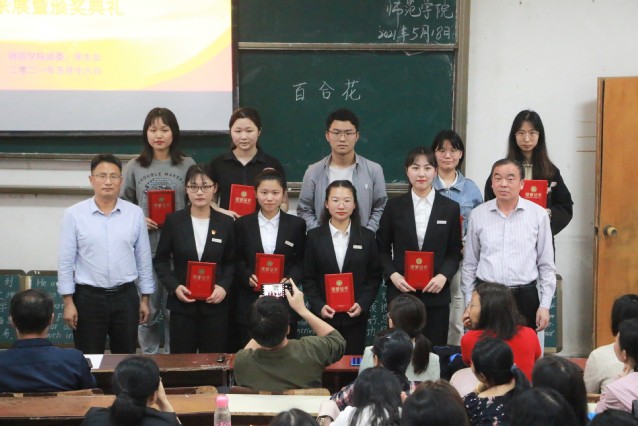 为培养师范生教学技能,提升学院学生实践能力,师范学院于5月18日在阶六教室举办了第五届“师能杯”教师技能比赛风采展暨颁奖仪式。学院党政领导、全院教师以及各班级学生代表参加了此次活动。活动由学团办老师王小君主持。