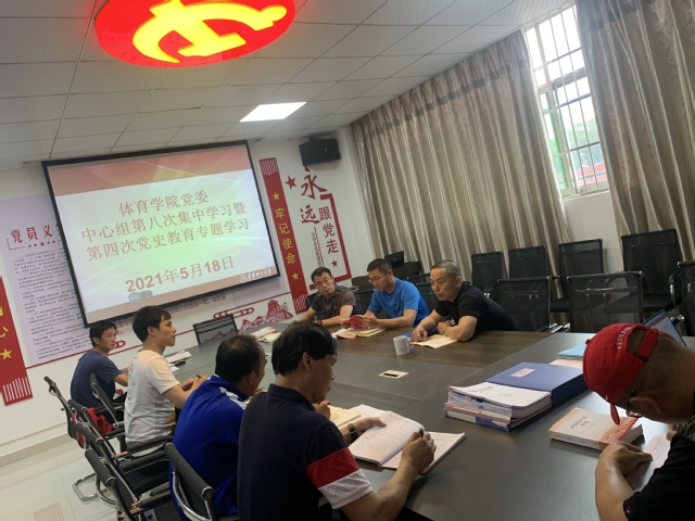 5月18日下午,体育学院党委在体育馆一楼党员活动室召开党史学习教育第4次专题学习暨党委理论学习中心组第8次学习会(扩大)。学院党委书记张明主持会议,院党委委员、支部书记、科级干部参加学习。