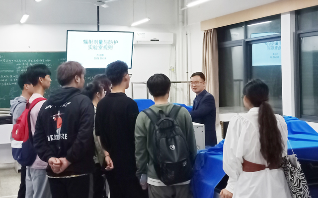 王国凤从实验室安全的重要性、实验室安全工作细则、实验室常见安全隐患、安全工作分析与思考等四个方面进行了详细讲解,并用鲜活的事例和我校实验室检查中发现的隐患警示教育师生安全无小事”,要筑牢安全防线。魏强林着重讲解了放射性实验安全及注意事项。会后,核工程技术省级示范实验教学中心对与会同学进行了现场培训。