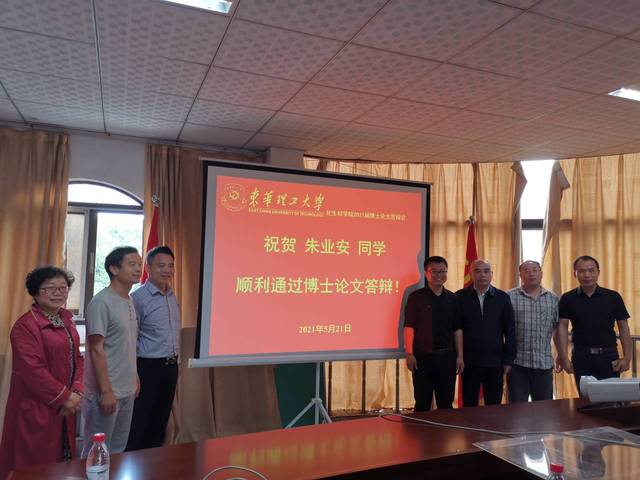 5月21日,化生材学院2017级博士生朱业安论文答辩会在东华理工大学老实验楼401会议室举行。朱业安毕业答辩的题目为“功能化石墨相氮化碳的制备及其光催化还原六价铀的研究”,指导老师为乐长高教授。担任本次论文答辩委员会的主席是来自江西师范大学的盛寿日教授,委员包括南昌大学范杰平教授,南昌航空大学谢宇教授,东华理工大学罗明标教授和周利民教授,会议由秘书李芳清副教授主持。