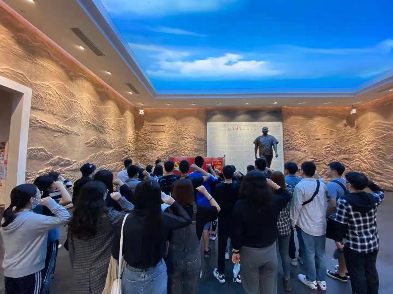在纪念馆门口,支部所有党员在学生支部书记的带领下一起重温了入党誓词,缅怀峥嵘岁月。