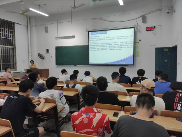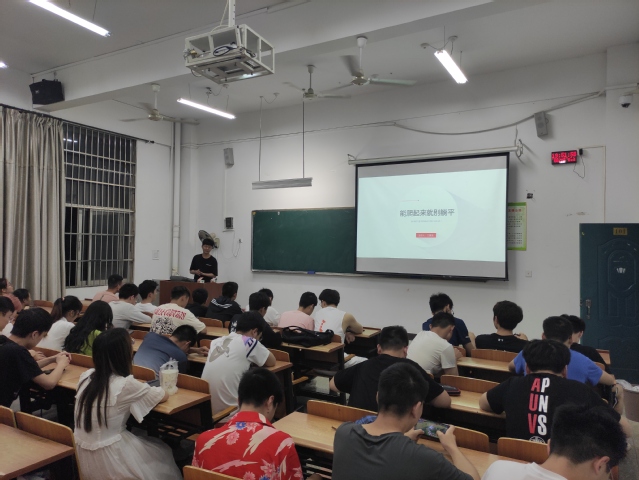 王翼龙同学分别在2020年、2021年荣获中国大学生“自强之星”和江西省“优秀共青团员”荣誉称号,并两次获得国家励志奖学金。他以《能爬起来就别躺平》为题作了报告,通过自己的学习感悟、竞赛体会和社会实践经历,鼓励同学们努力学习专业知识,积极参加各类科技竞赛和社会实践活动,主动申请各类奖学金,以及提前做好考研规划。同时,他建议同学们在日常的学习和生活中做好时间管理,保持自信乐观,培养兴趣爱好,愉快的学习和生活。