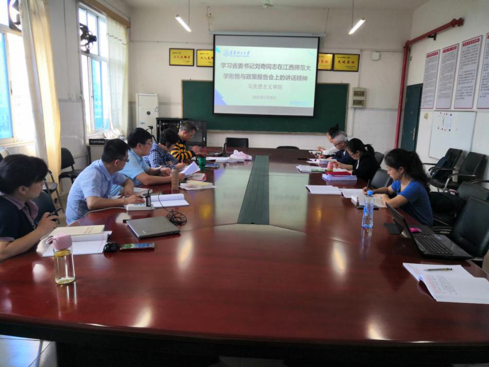 会议强调,要认真组织全院教师深入学习省委书记刘奇同志在江西师范大学形势与政策报告会上的讲话精神以及习近平总书记视察江西讲话精神。将讲话精神落实到推动学院各项工作中,推动学院各项工作高质量发展。(图/周成莉 文/段艳丰)