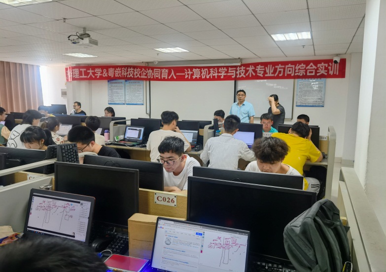 为有序推进国家一流专业建设,根据学期课程教学实施计划,信息工程学院计算机科学与技术专业邀请合作企业广州粤嵌通信科技股份有限公司的高级技术人员来校为该专业2018级学生开展2周的《专业方向综合项目实训》教学。