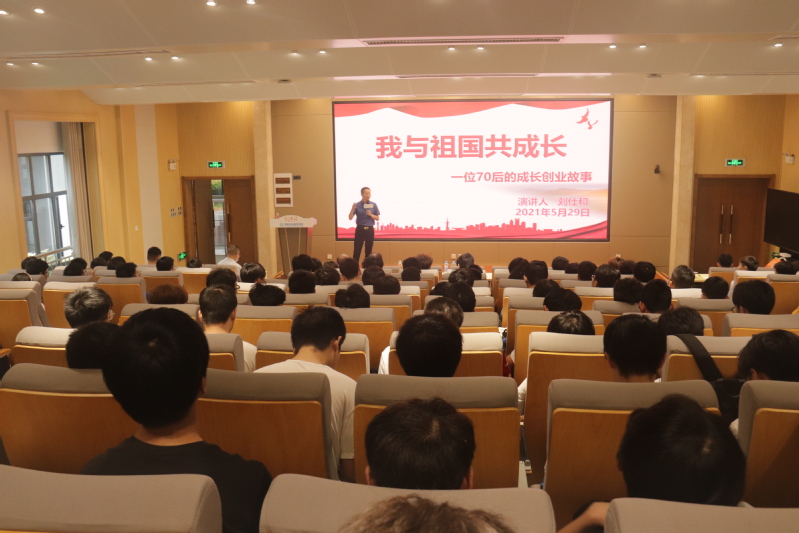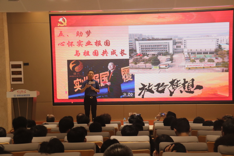 5月28日下午,在全国、全党开展党史学习教育,以崭新姿态喜迎中国共产党成立100周年之际,创新创业教育学院、软件学院联合开展“感党恩,与祖国共成长——创业典型宣讲活动”,活动在四教阶19报告厅举行。中山市雄兵橡胶有限公司董事长、中山市江西商会荣誉会长刘仕和应邀为师生分享他的创业故事和从事公益事业的感悟。创新创业教育学院、软件学院200多名师生参加了活动。
